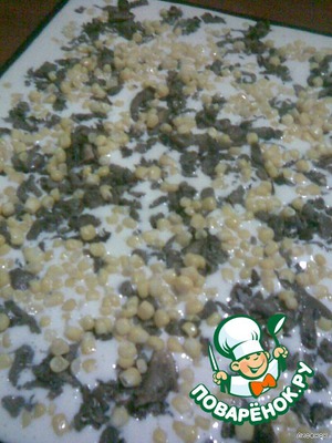 на тесто высыпаем грибы с луком