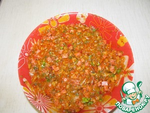 Мелко порезать зелень, добавить к овощной смеси, все перемешать.