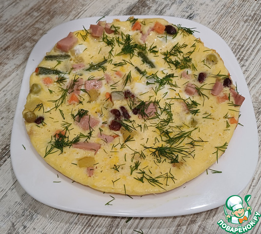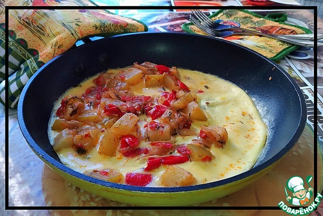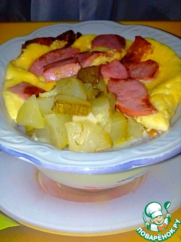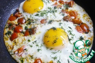 Рецепт «Яичница с обжаренными овощами и колбасой»: