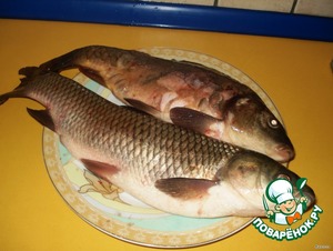 Вот такие две рыбины я приобрела, но готовить пока будем только амура, а из карпа нам понадобится икра.