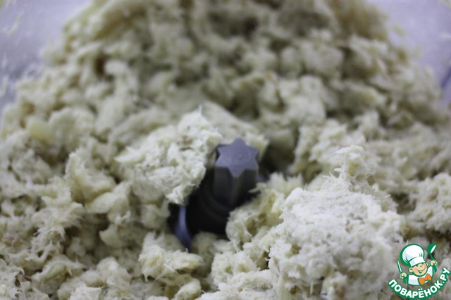 Рыбу очистить от костей и нарезать. ( Я использовала кухонный комбайн Calaxy)