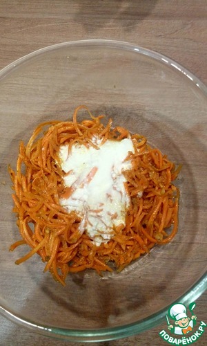 Третий слой у нас морковка по -корейски. Кстати морковку я делаю сама, как и майонез.