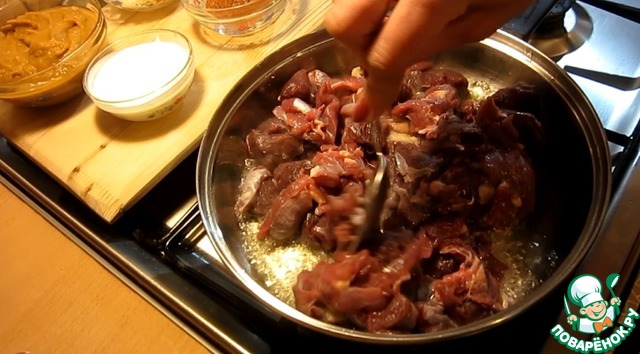 Рецепт «Тушеное гусиное мясо в кабачковой икре»: