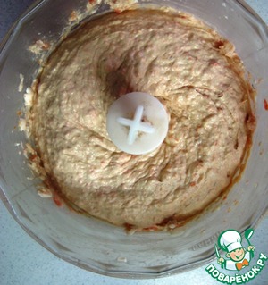 • Для начинки в чаше блендера соединяем кусочки плавленого сыра и предварительно сваренной и остывшей моркови.