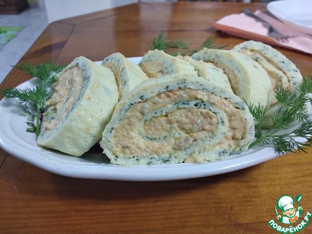 Рецепт «Яичный рулет с селедочной начинкой»: