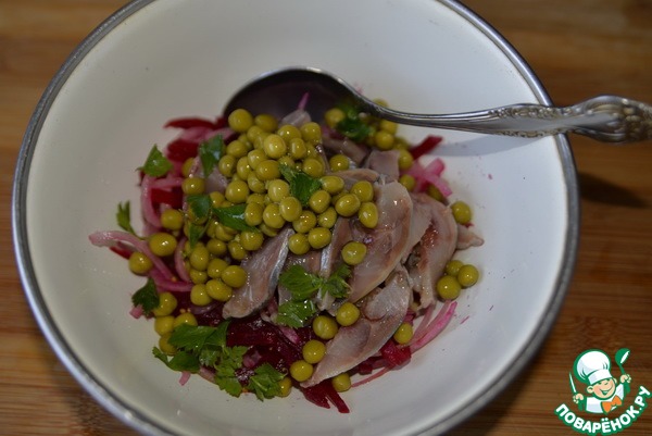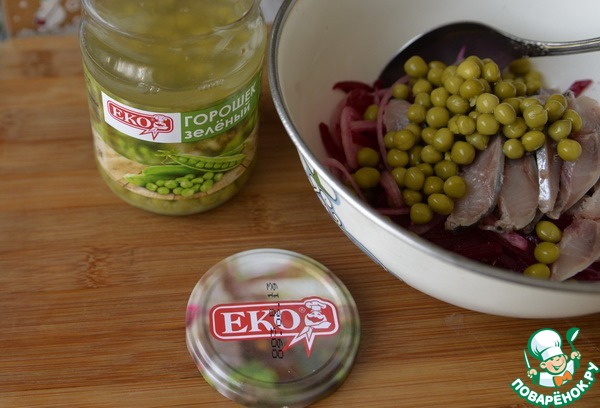 Рецепт «Салат из сельди, маринованной свеклы и горошка»: