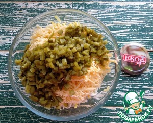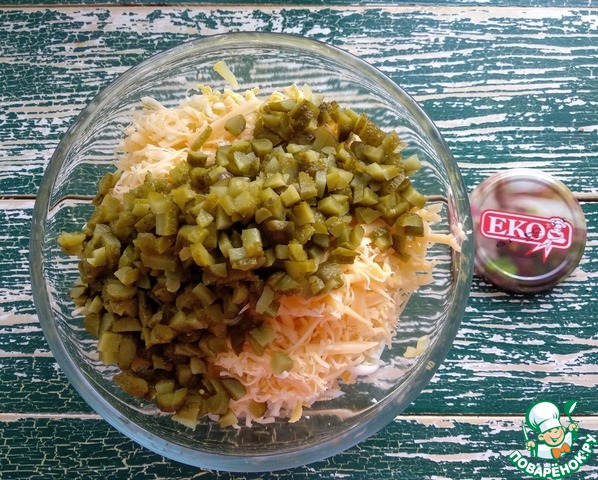 И добавить к остальным ингредиентам. Хорошо перемешать, добавить майонез и снова хорошо перемешать.