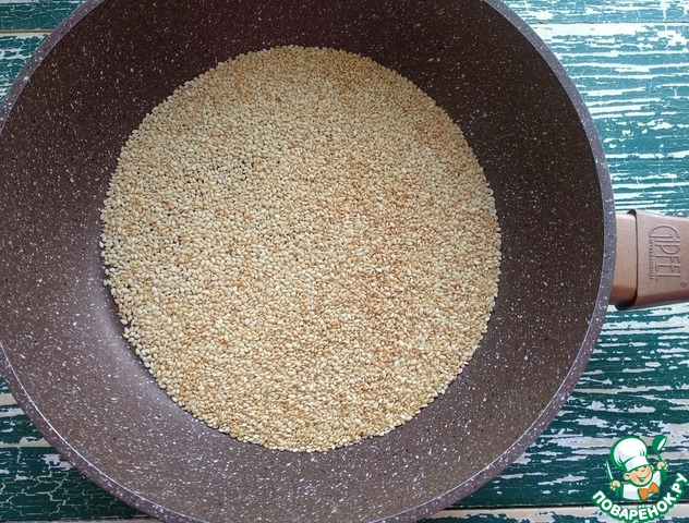 Кунжут обжарить на сухой сковороде до золотистого цвета.