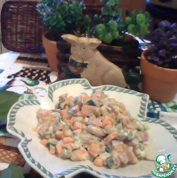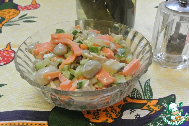 Морковь отварить, остудить, нарезать мелкими кубиками.