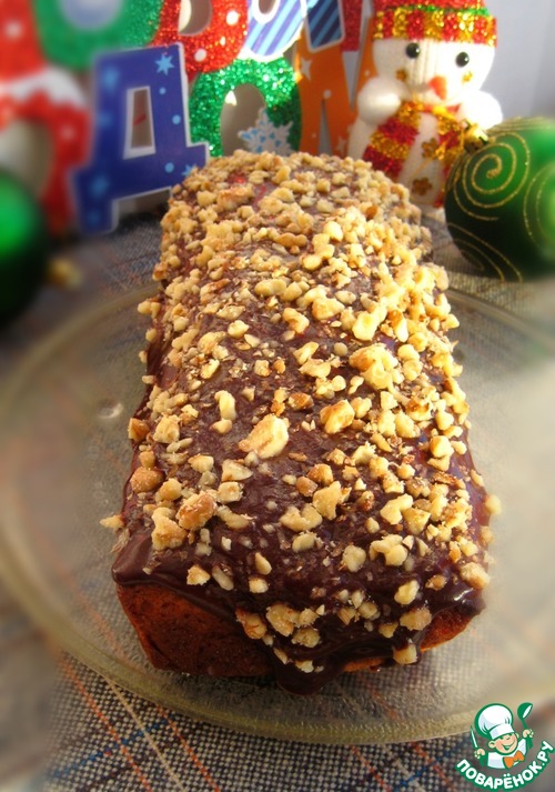 Далее украшаем кекс по желанию и настроению. Можно присыпать сахарной пудрой, сделать сахарную глазурь или шоколадную. У меня - шоколадная глазурь и измельченные орешки.