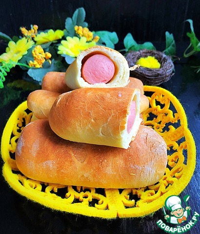 Внучка не любит влажность в тесте. Сосиски разрезала на 2 части.