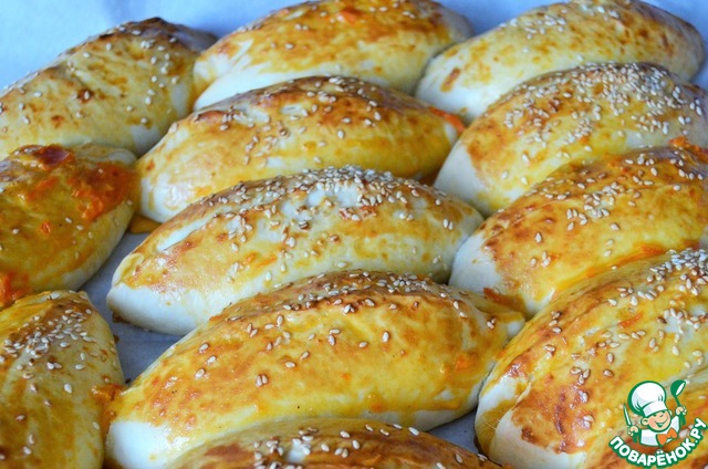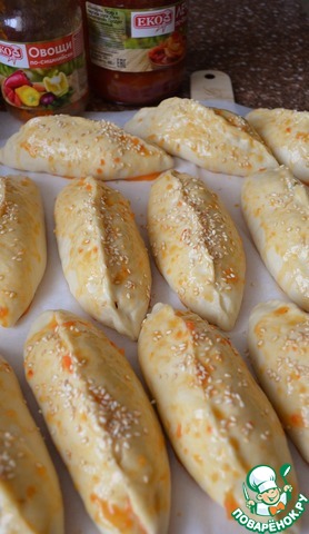 Этой смесью смазать расстоявшиеся заготовки, посыпать кунжутом.