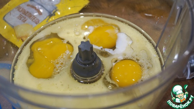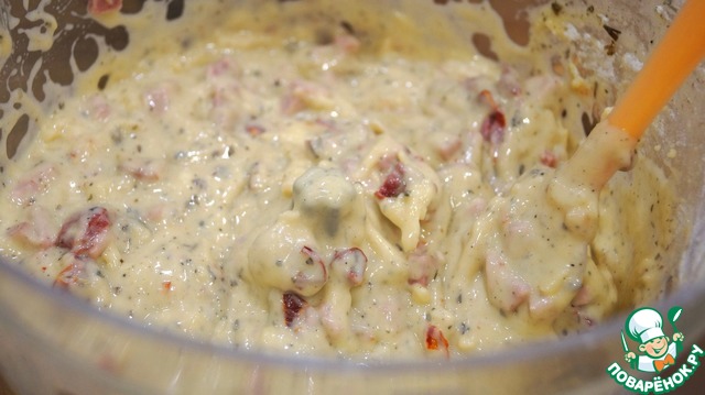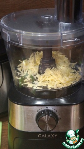 Для приготовления блюда использован кухонный комбайн GALAXY GL2300: сыр натерт при помощи насадки-терки, а тесто приготовлено при помощи насадки "венчик".