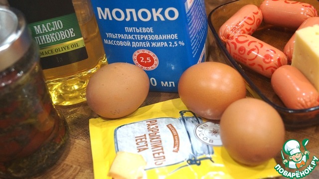 Ингредиенты для «Закусочные маффины с сыром и сосисками»: