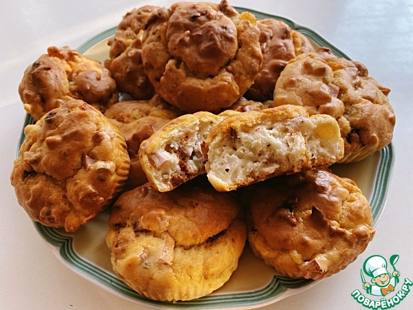 Очень похожи на выпечку из заварного теста, пикантные и очень приятные на вкус. И не забудьте подать к маффинам какой-нибудь вкусный барбекю-соус. Если вы хотите, чтобы маффины стали мягкими, то положите из на пару часов в целлофановый пакет.