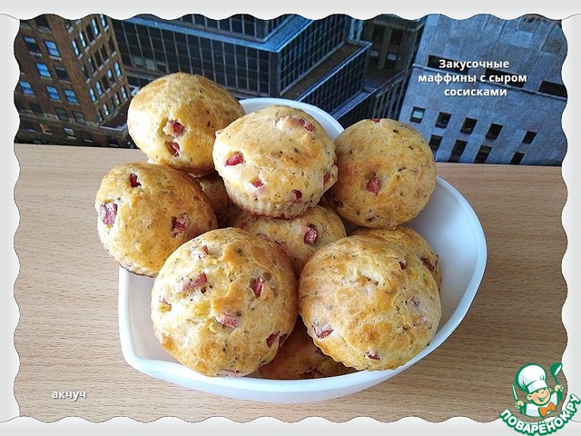 Рецепт «Закусочные маффины с сыром и сосисками»: