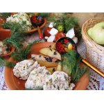 Готовим все продукты. Вместо сосисок чудно смотрится колбаса или вообще микс мясной, оставшийся от праздничного стола, копчености всякие. Сухие травы можно не добавлять. При желании можно штук 10 оливок добавить, будет красивее разрез. Все чудесно взаимозаменяется.