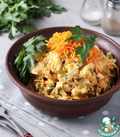 Вкусный и простой в приготовлении салат. В последнее время он стал частым гостем на нашем столе и одним из любимых салатов.