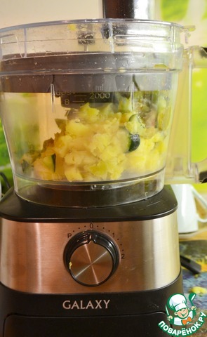 Измельчить картофель и огурцы. Я сделала это с помощью комбайна GALAXY GL2300.