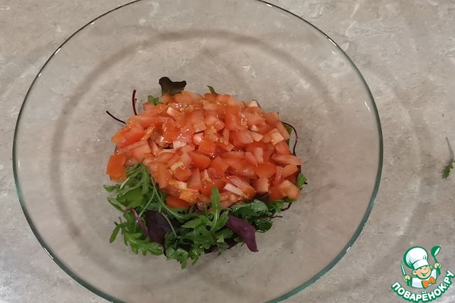 Нарезаем небольшими кубиками помидоры. И выкладываем их в миску.