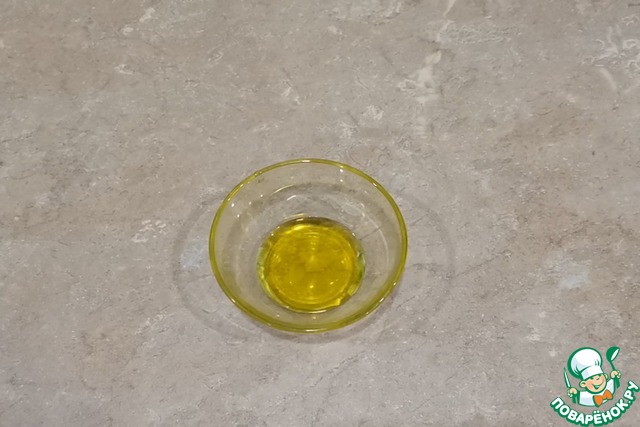Готовим соус для салата. В маленькую миску вливаем оливковое масло.