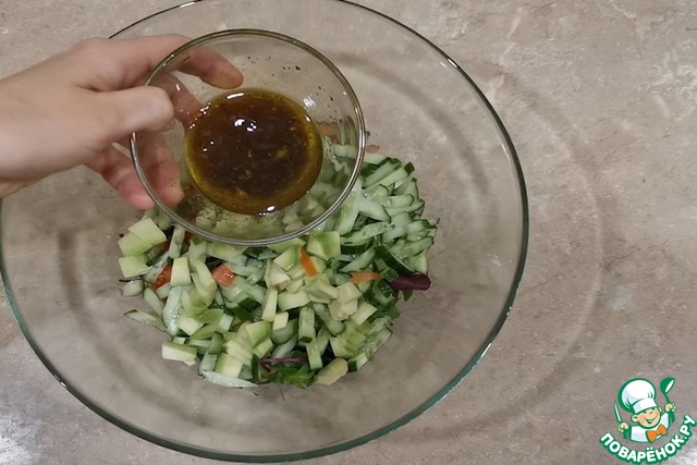 Вливаем соус в наш салат и все перемешаем.