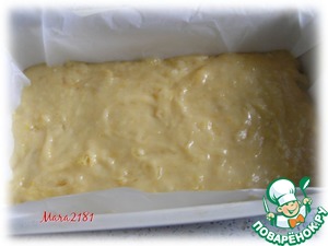 Подготовить форму для запекания, застелив её пергаментной бумагой. Заполнить форму подготовленным тестом. Выпекать кекс в заранее разогретой до 180 градусов духовке около 45-50 минут до румяности.