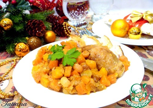Рецепт «Курица, фаршированная тыквой с изюмом»: