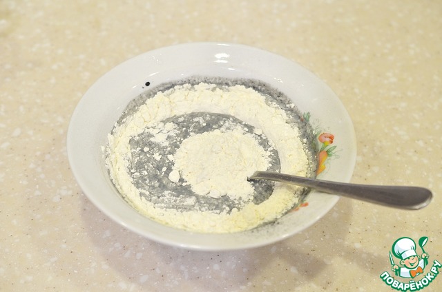 Всыпьте муку и хорошо перемешайте до однородного состояния.