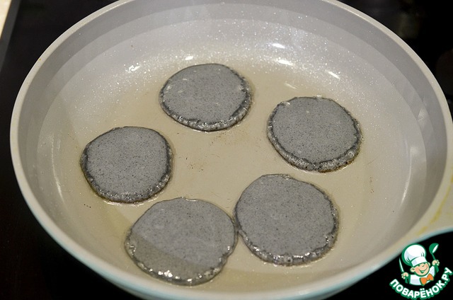 Раскрошите таблетки угля и растворите их в кефире. Для того, чтобы блины были черными, а не серыми, нужно растворить таблетки именно в жидкости. Если вы добавите их например в муку при замешивании теста, то блинчики будут серыми.