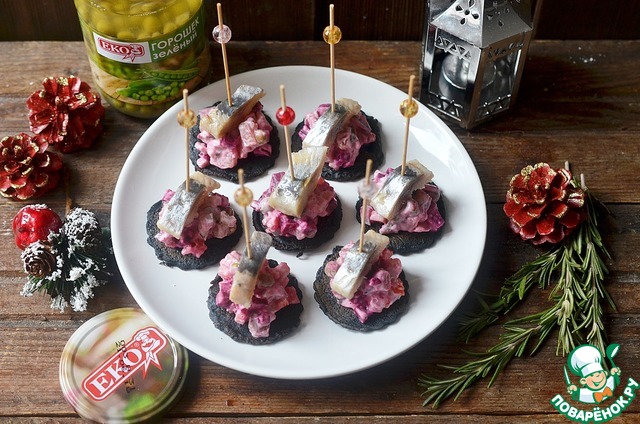 Рецепт «Черные блинчики с винегретом и сельдью»: