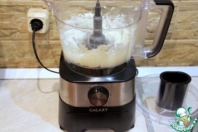 Лук измельчить в комбайне GALAXY GL2300 с помощью ножей измельчителей.