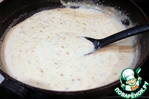 Влить молоко и положить тертый сыр, соль, мускатный орех и варить до загустения соус. Остудить.