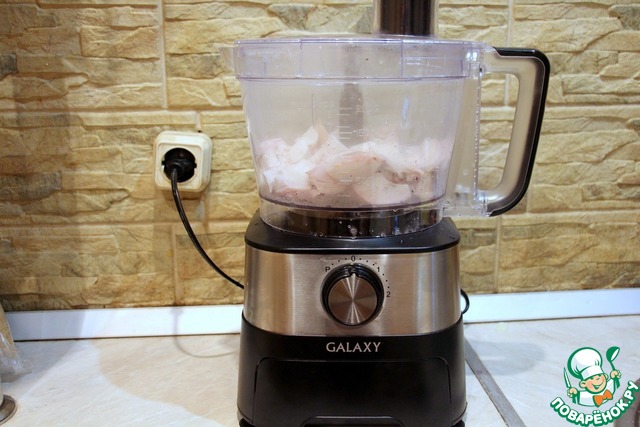 Грудку отварить, измельчить в комбайне GALAXY GL2300 с помощью ножа- измельчителя.