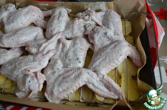 [+5]Крылья нежные, с кислинкой и ароматом базилика, а уж картошка томлённая в маринаде-бульоне, просто супер.