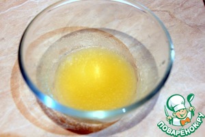 Желатин замочить в соке на время, указанное на инструкции на упаковке.