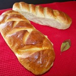Хлеб смазываем молоком и слегка присыпаем мукой.