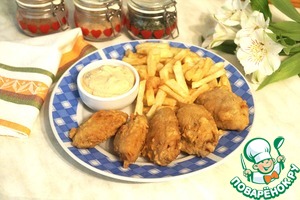 Готовые крылья выложить на бумажное полотенце, чтобы стекли излишки масла. Подавать с соусом или острым кетчупом. На гарнир - картофель фри.