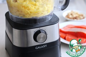 Измельчить миндаль и грецкие орехи в крошку при помощи кухонного комбайна GALAXY GL2300.