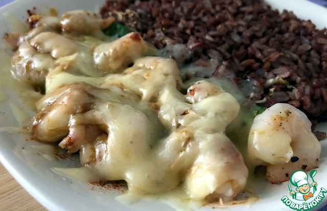 Рецепт «Креветки с авокадо под сырной шубой»: