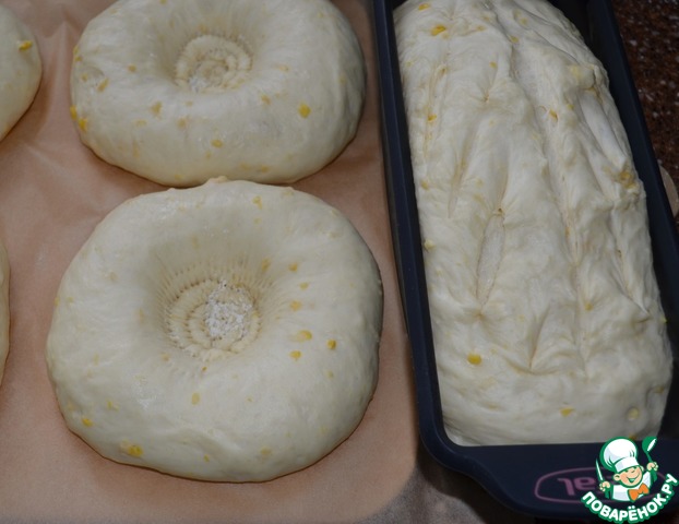 • Форму прикрыть плёнкой и убрать на расстойку, в тёплое место без сквозняков.