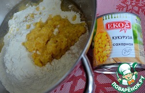 сахар, просеянную муку и дрожжи, выложить кукурузную массу.