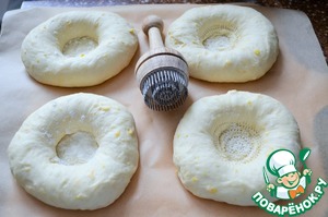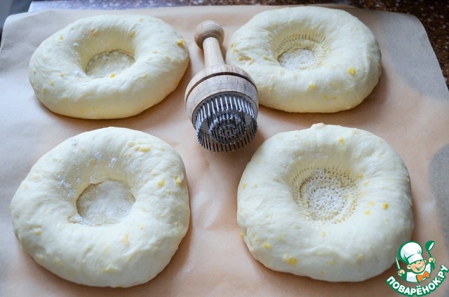 Из колобков сформовать заготовки восточных лепёшек. Прикрыть, оставить на расстойку.