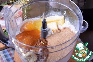 Загружаем сразу все ингредиенты для теста и, используя функцию измельчения продуктов, включаем комбайн на скорость "1" буквально на 1-2 минуты. -