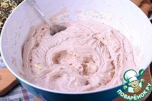 Взбиваем до состояния устойчивого пика. Далее добавляем каштановый джем и вмешиваем его в крем на средней скорости миксера. -