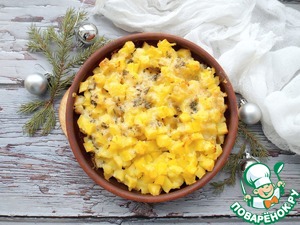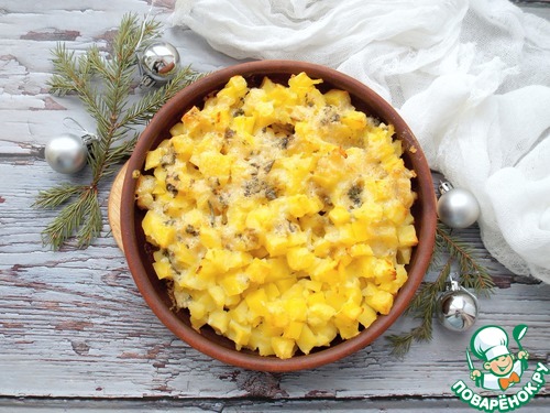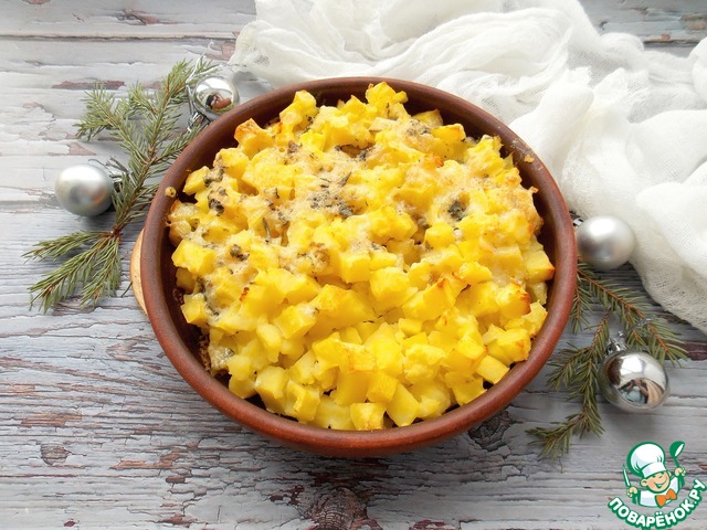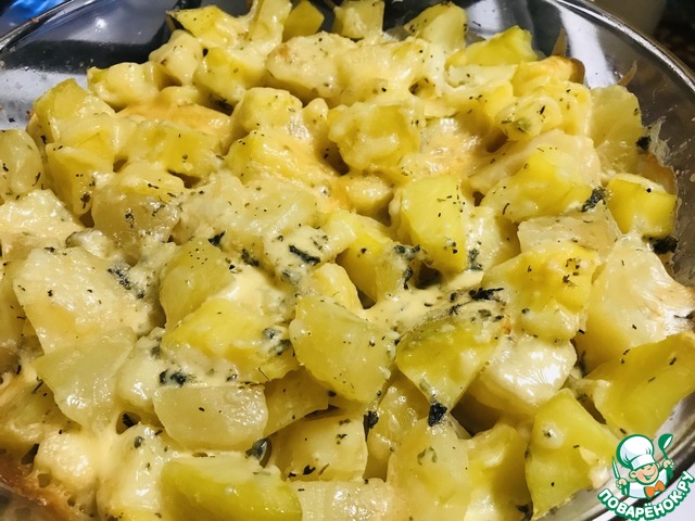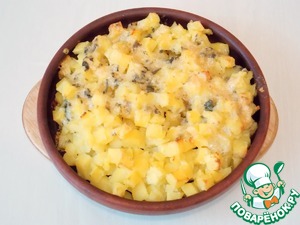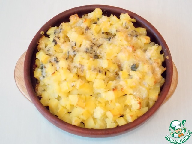 Ставим форму в горячдуховку при температуре 180 градусов и запекаем в течение 15-20 минут. Сыр должен расплавиться, а картошечка позолотиться.
