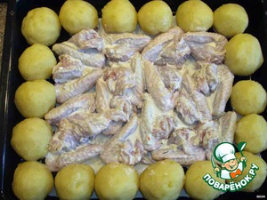 В серединку нашей полянки выкладываем крылышки, я их складывала треугольничками, посмотреть можно здесь http://www.povarenok .ru/recipes/show/153 33/