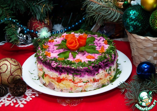 Салат с копченой курицей, свеклой «Генерал»