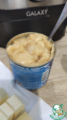 В чашу комбайна GALAXY GL2300 положить сливочное масло, с помощью венчиков взбить. Взбивая добавлять сгущенку.