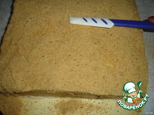 кремом смазать все стороны торта и обильно обсыпать крошкой со всех сторон -